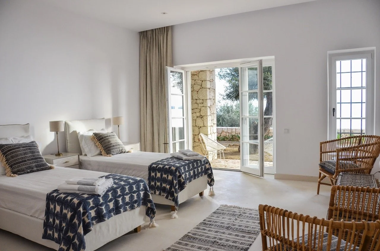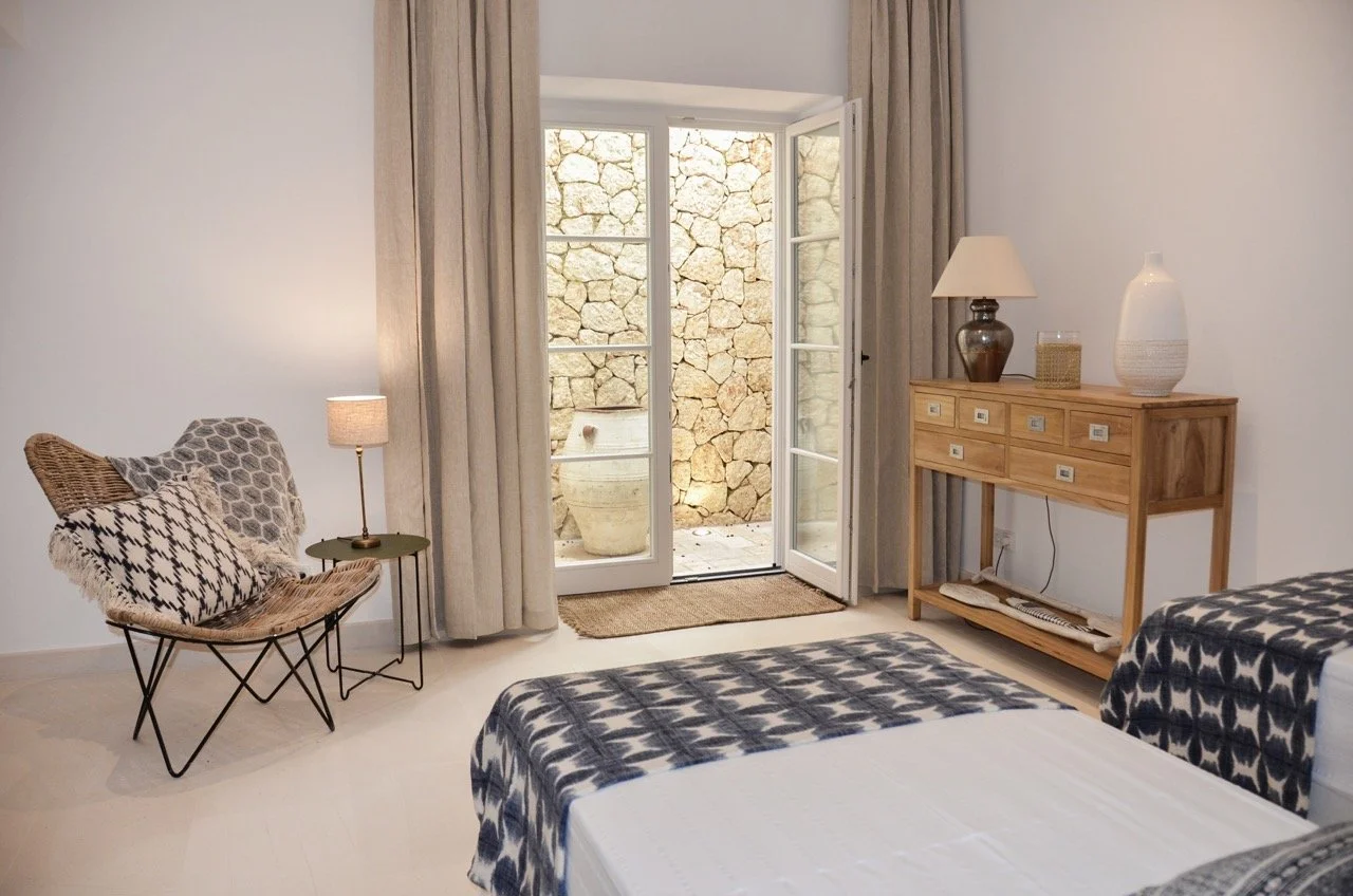 An easy walk through a gently sloping garden planted with swathes of rosemary, olives, kumquats leads to a row of little pebble beaches, with a ladder for entering the water and a small mooring buoy, gives guests direct swimming and boat possibilities - the key to the real Corfu lifestyle!